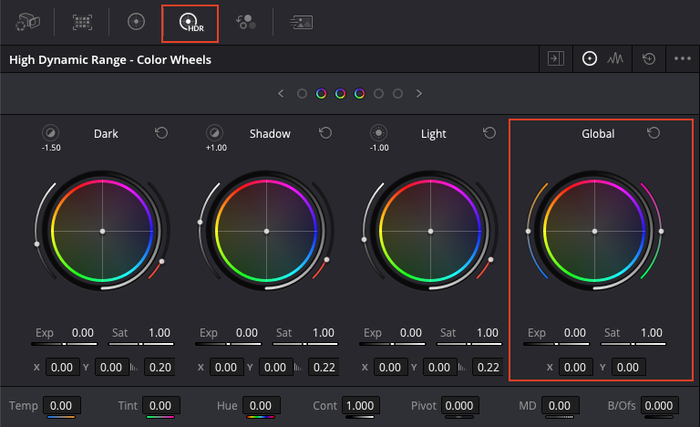 Start with the HDR Global wheel to lower overall exposure. It’s photometrically correct and lets you work in stops, and will allow you adjust the exposure in a similar way to how the camera would adjust the exposure on set.